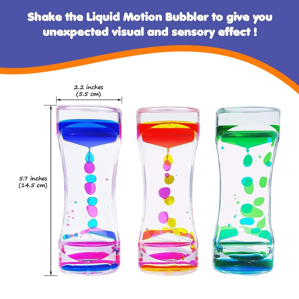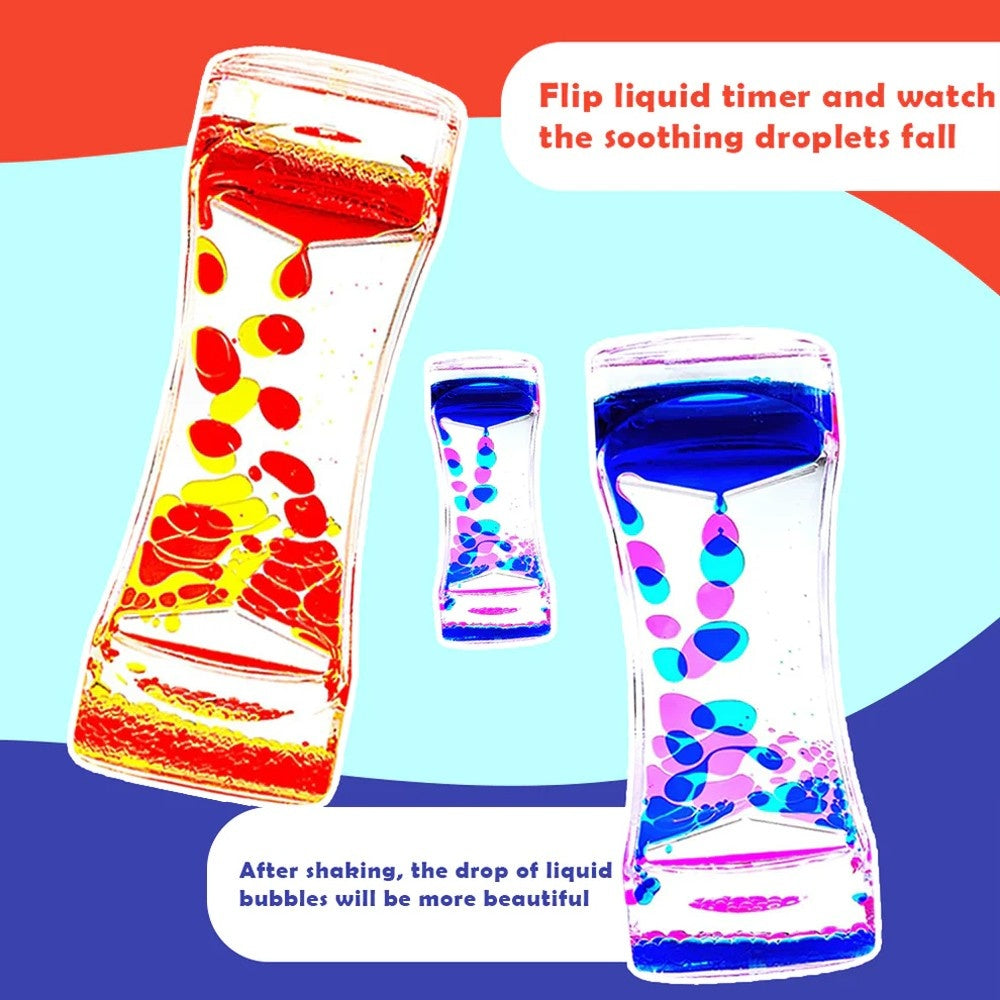 This pack includes three unique timers. Just flip one over and watch the colorful bubbles and droplets flow slowly from top to bottom in a predictable, rhythmic pattern. This gentle, mesmerizing motion is ideal for visual sensory input. ✓