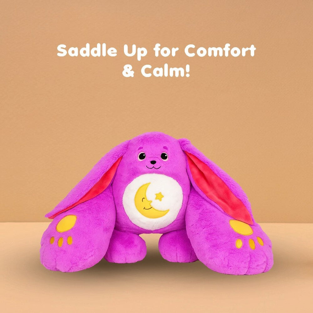 Ableys purple bunny weighted plush sensory toy with moon belly patch and long floppy ears for cuddling