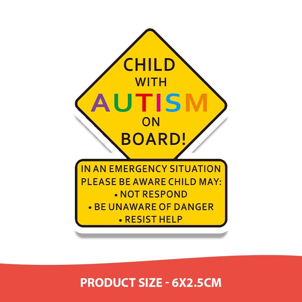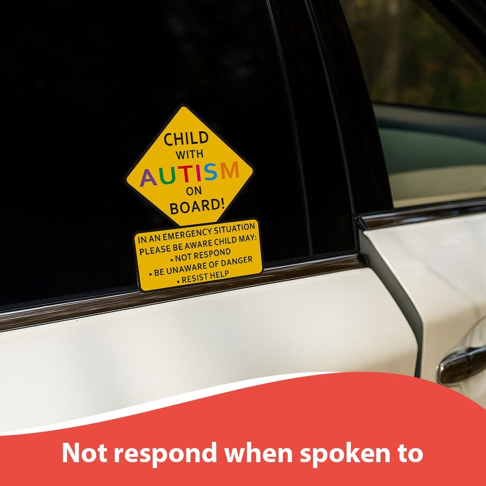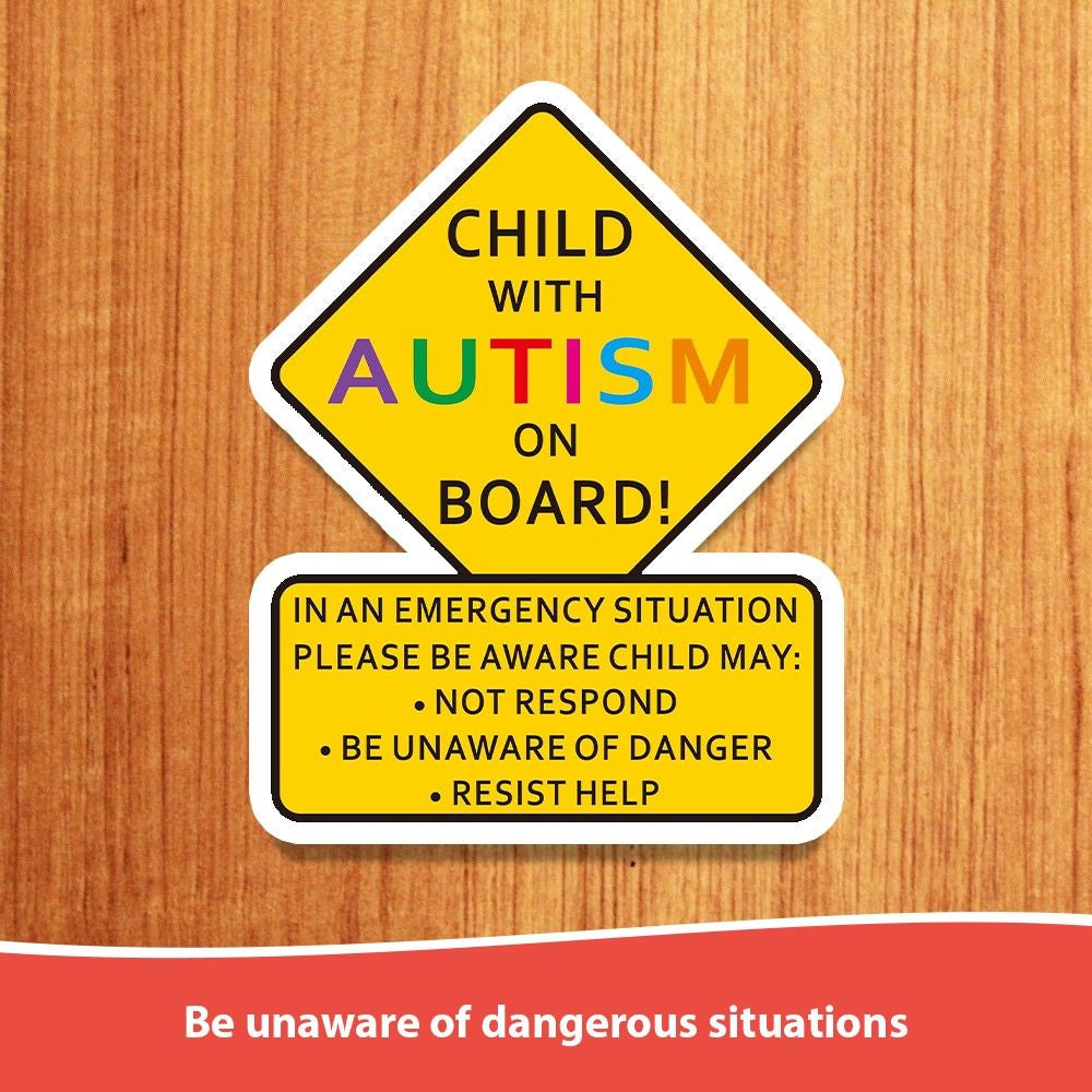 Enhance awareness and safety with this "Child On Board" car sticker. This bright, highly visible sign alerts emergency responders and other drivers that a child with unique communication or behavioral needs is in the vehicle. In an emergency, this sticker communicates vital information—that the child may not respond to verbal commands, might be unaware of danger, or could resist help. The durable, weatherproof design is ideal for car windows or bumpers. A simple yet vital tool for families, encouraging extra caution and understanding from others.
