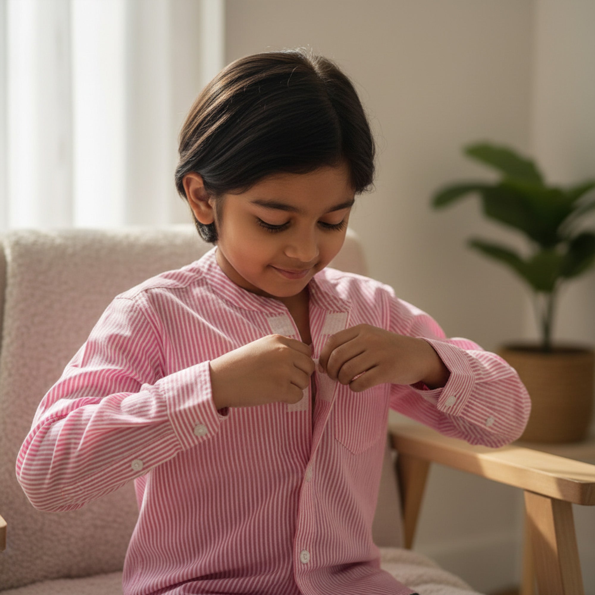 Does your child struggle with tiny buttons or get irritated by scratchy clothing tags? The Ableys Adaptive Shirt is designed to solve these exact challenges. We have reimagined the classic smart shirt to be sensory-inclusive and frustration-free, helping children dress themselves with confidence.