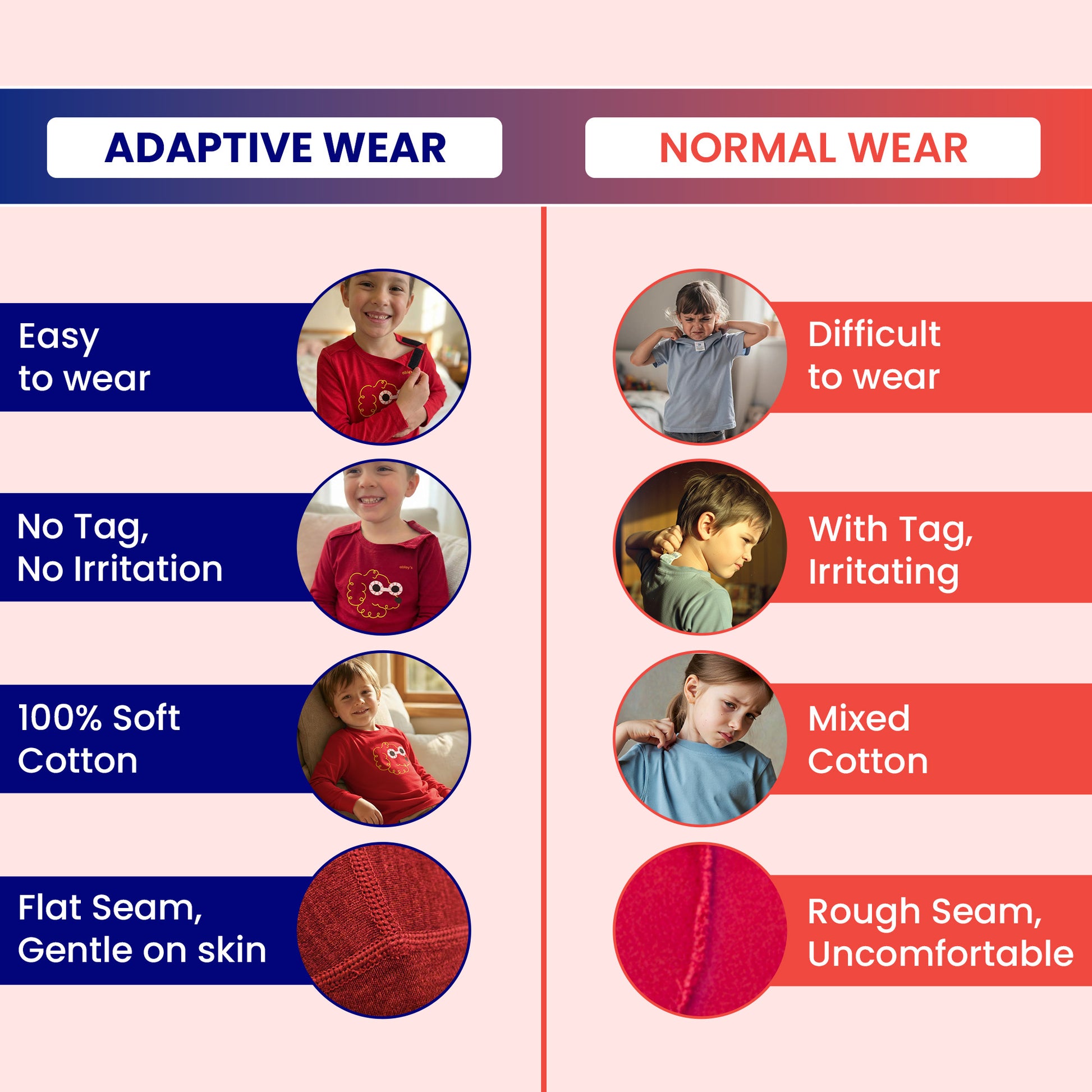 For many children with sensory sensitivities or limited mobility, pulling a tight t-shirt collar over the head can be a source of anxiety and discomfort. Traditional clothing often comes with itchy tags and rough seams that distract and irritate sensitive skin. The Abley's Adaptive Long Sleeve T-Shirt is designed to solve these exact challenges, making getting dressed a breeze rather than a battle.
