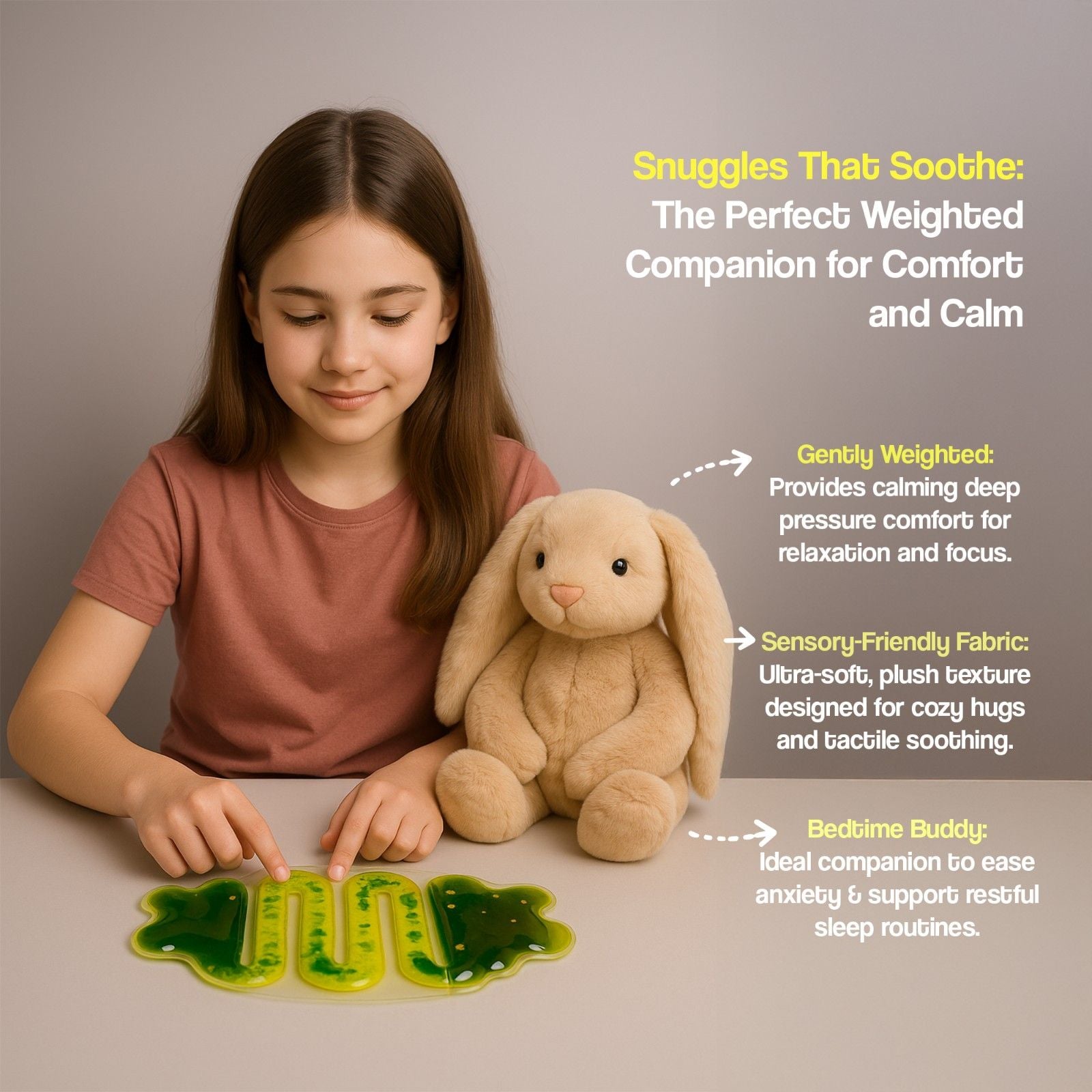Why You'll Love Abley's Weighted Vibrating Bunny Plush | 4lb (1.81kg) Dual-Sensory Comfort